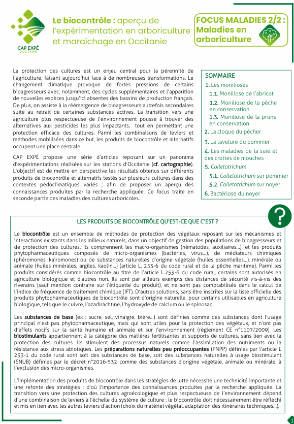 Dans le cadre des projets CAP LACE’Oc et CAP ADAPT’Oc de CAP EXPÉ, les stations d’expérimentation d’Occitanie ont travaillé à une série d’articles regroupant des résultats de projets et d’essais sur l’expérimentation du biocontrôle en arboriculture et maraîchage.